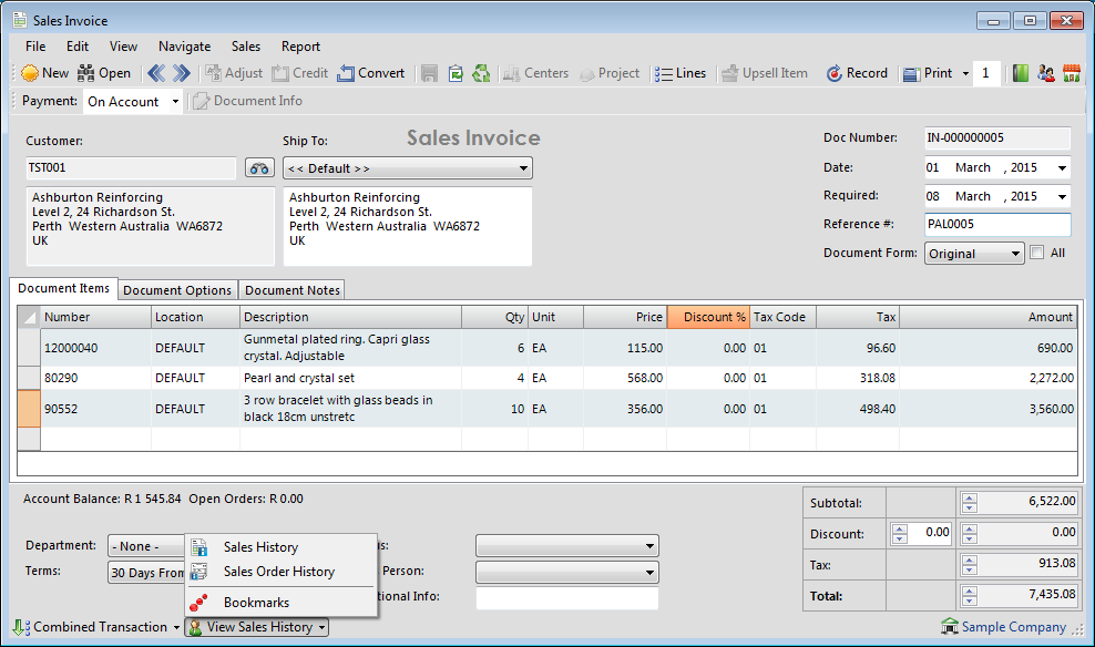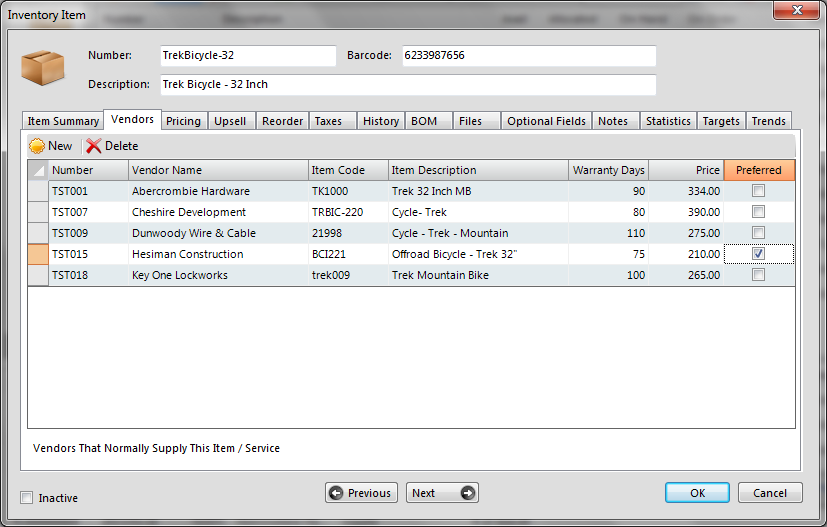 You are able to view Vendor History at a glance on all processing documents with the ability to copy these items onto the processing document with one click. The ability to Bookmark documents for quick reference gives you the ability to copy items from one document to any other document in seconds. This could be used to copy items from a Purchase order to a Customer Invoice or vice versa. To View a support article on the Bookmarking of documents click here. To view the article on looking up Customer Order/Sales, and Supplier Order/Purchase information, and copying this to the current processing document click here.