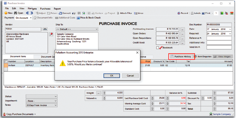 Purchase Price Variance Control on Purchase DocumentsÂ