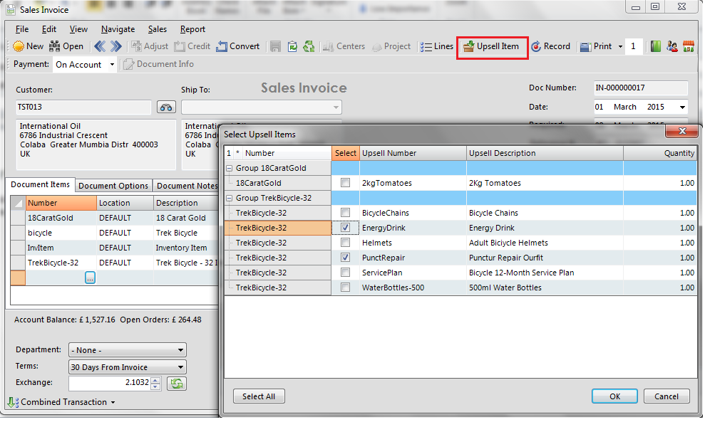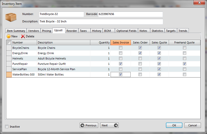Palladium has an advanced Upsell Functionality that allows you to set an unlimited number of “Upsell” Items with settings for Optional Dynamic Prompting per processing Document. This feature makes it simple for new employees to sell specialised products with little experience of the business, ensuring maximised revenue potential at all times. This function can also be used to group like items in the form of Kits. For more information, read the support article.