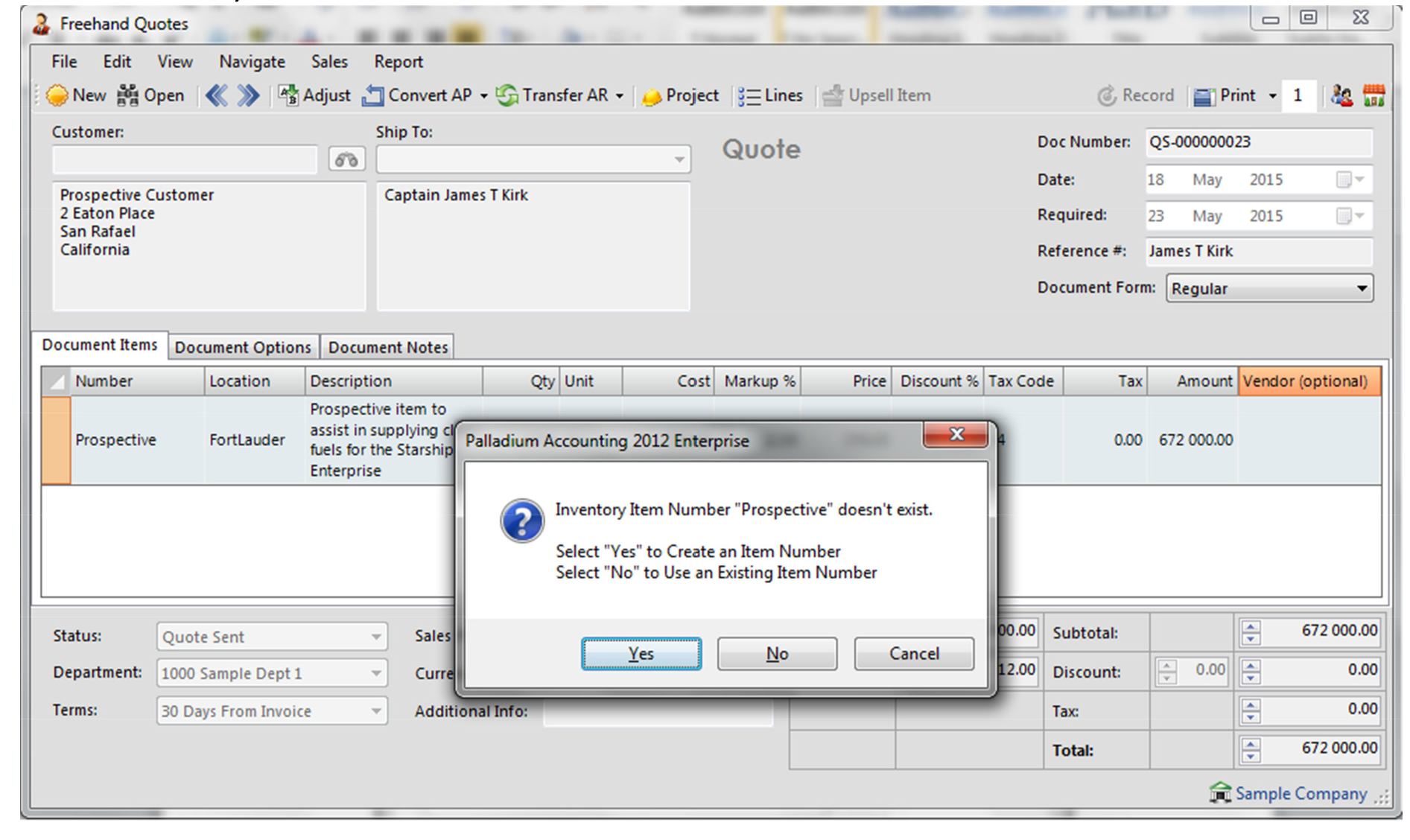 Freehand Quotes allows the creation of quotes for prospective clients without having to create a customer masterfile, or inventory records. Set margins, select Vendors and create simultaneous Purchase and Sales documents all from the same screen, ideal for tenders and the related approvals.
