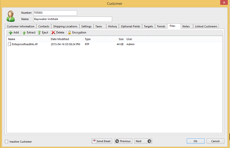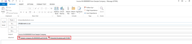 You can attach related files on the fly with emailed sales documents. When setting up inventory item file attachments, you can set whether the document is auto-mailed with the relevant sales document, such as invoices, orders etc, and when the sales document is created, all related documents are attached and sent accordingly. This information could be installation instructions, manufacturing certificates, warranty information or even a sales document recommending related items.