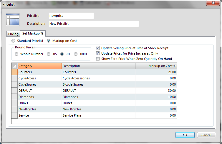 Automatically Update certain or all of your Inventory Item selling prices for specific customers. This feature allows you to define a price list as a “List” or a “Markup On Cost” type pricelist. The Markup on Cost pricelist has the ability to change the selling price dynamically at the time of Receiving or on the Manufacturing of Inventory items, with a set Markup by Item Category. The ability to change the price for increases only, with a full audit trail report on all changes by user and the option to have an unlimited number of customer pricelists, rounds off this feature.