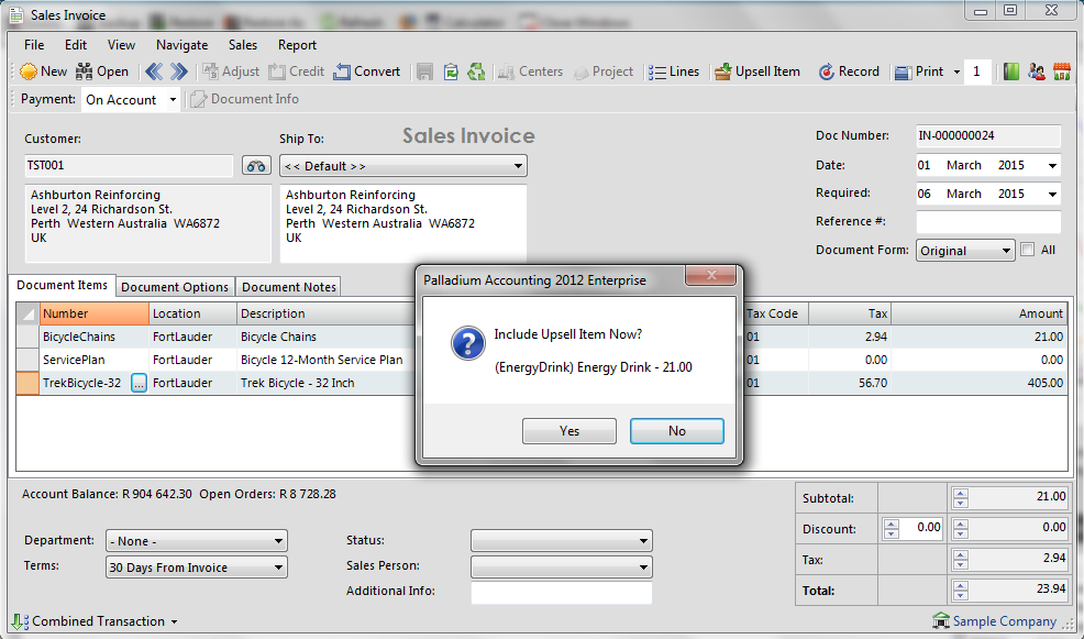 Palladium has an advanced Upsell Functionality that allows you to set an unlimited number of “Upsell” Items with settings for Optional Dynamic Prompting per processing Document. This feature makes it simple for new employees to sell specialised products with little experience of the business, ensuring maximised revenue potential at all times. This function can also be used to group like items in the form of Kits. For more information, read the support article.