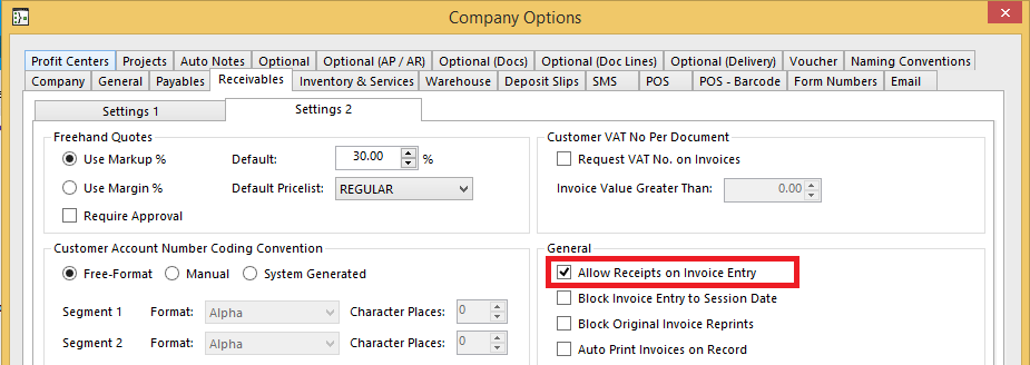 An option has been added to the Customer Sales Invoice function allowing for an In-Document Management Authorization override on the amending of the item Price, Discount or overall document discount fields. This acts in the same way as the credit note approval function, and will invoke for the authorisation on amending.