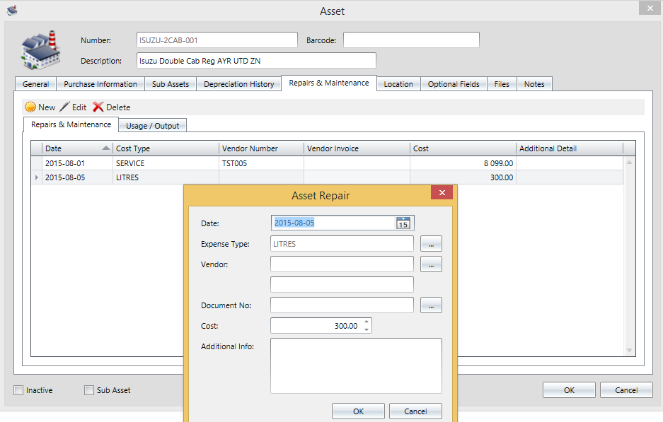 Categorise and allocate costs to your Fixed Assets by posting to the R&M account associated with the asset. Palladium allows users to group costs and report on usage or output per cost.